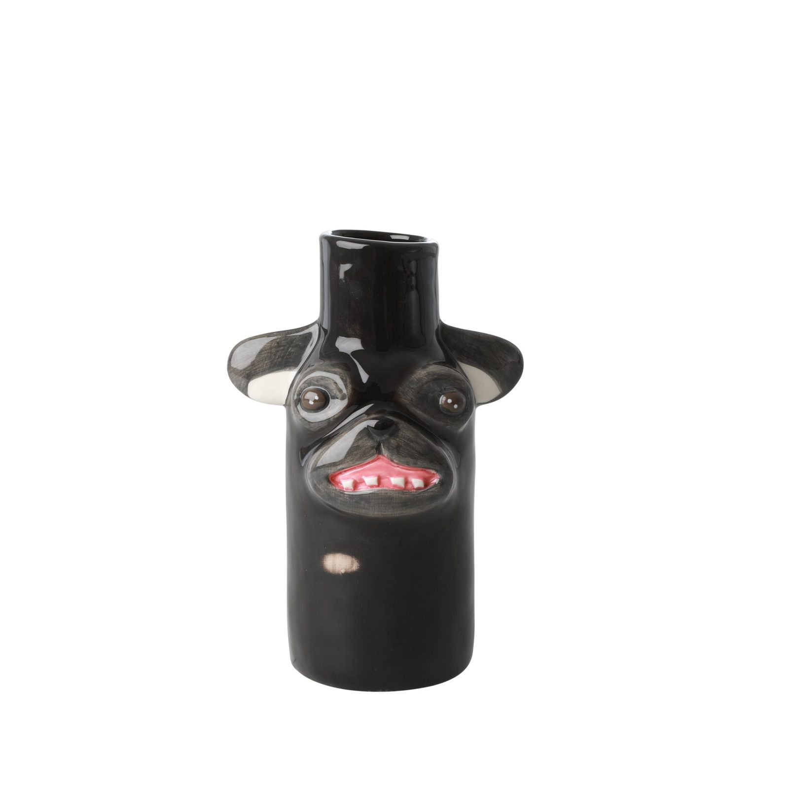 The cutest black vase with a sweet dog face on it - This particular vase is called Otto - after a 12-year-old, black pug and part of a series of vases called "Stella and Friends." These funky vases are created in a collaboration with American artist, Katie Kimmel who makes one-off vases of peoples dogs - and we just fell in love with her great dog vases.