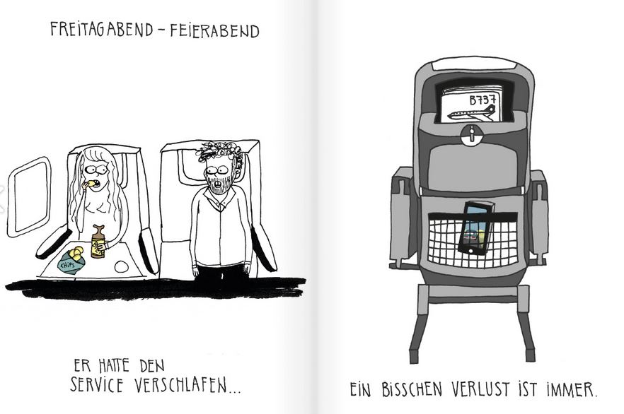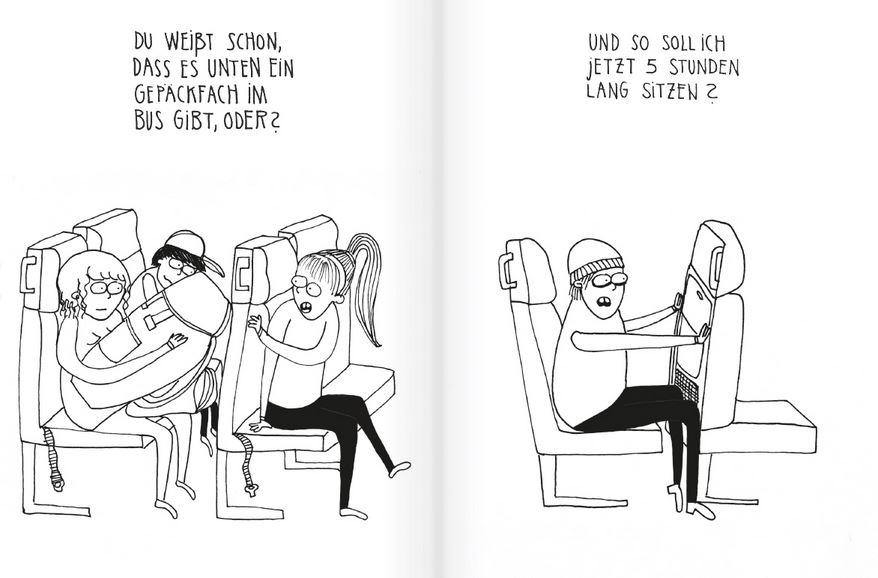 Siri Matthey pendelt als freie Illustratorin zu Magazinen in Hamburg, München und Berlin und verarbeitet ihre Erlebnisse in einem Skizzenbuch. Sie beobachtet, belauscht, skizziert und spitzt pointiert zu. Für uns hat sie auch die Verkehrsmittel getestet, die bislang auf ihrer Not-to-travel-by-Liste standen.