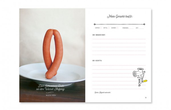 Es geht nicht nur Frau Lotte so: immer und immer wieder kommt dasselbe auf den Tisch. Die Klassiker halt, die sich im Lottschen Haushalt bewährt haben. Welche andere Lieblingsrezepte würden wohl Abwechslung in den Speiseplan bringen? Mit dem richtig schön aufgemachten Bauch-Poesie-Buch findest Du das heraus! Einfach weitergeben an Deine Gschpänli und deren erprobte und für gut befundene Rezepte eintragen lassen. Frau Lotte wünscht En Guete!