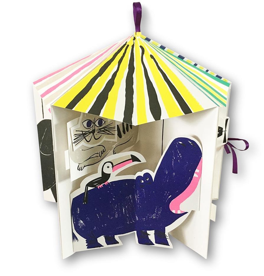 Aufgeschlagen steht Das Karussell der Tiere auch dekorativ in jedem Kinderzimmer oder zieht als Mobile an der Zimmerdecke alle Blicke auf sich.