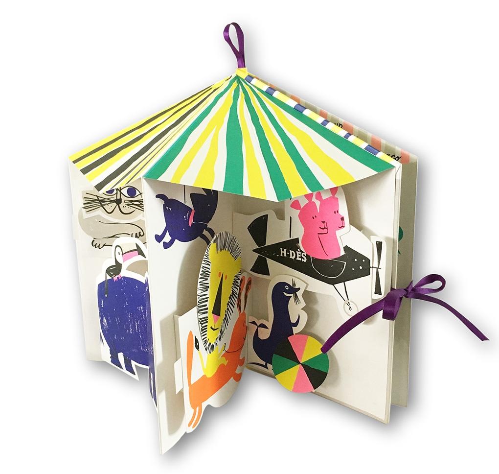 Eine bunte Tierbande trifft sich zur Fahrt auf dem Karussell: ein Pop-Up-Buch mit Sammlerwert!