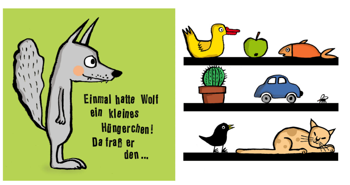 Einmal hatte der Wolf ein kleines Hüngerchen, da frass er... – aufgepasst, Klein Lottchen*Lotterichen: was fehlt denn jetzt im Regal und ist daher im Bauch vom Wolf gelandet? Ein lustiges Suchspiel-Buch mit überraschendem Ende von Frau Lottes und Klein Lottchens Top-5-Lieblings-Büchermacherin!