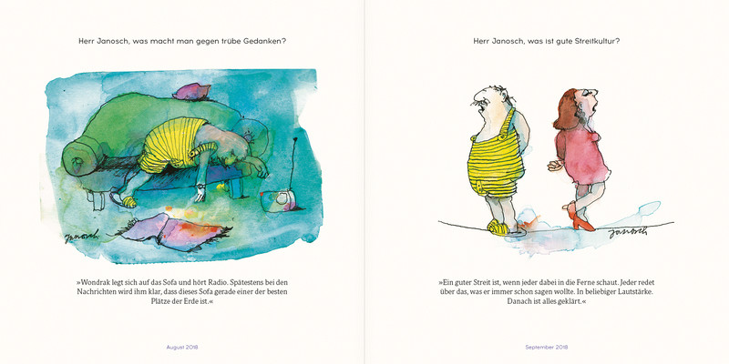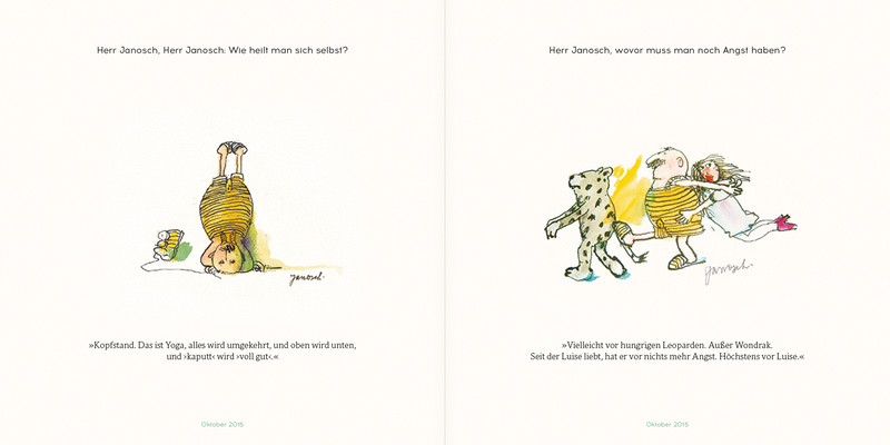 Ein Muss für Janosch-Fans: erstmals alle Wondrak-Kolumnen in einem Band! Mehr als sechs Jahre lang erheiterte ein Mann mit Schnauzbart und stattlichem Bauch, gekleidet in gelb-schwarz gestreifte Garderobe, Woche um Woche die Leser des ZEIT-Magazins: Wondrak. Seine einfallsreichen Antworten auf grosse und kleine Fragen des Lebens, die von zauberhaft gezeichneten Momentaufnahmen begleitet wurden, zählten zu den Höhepunkten jedes Hefts. Hinter Wondrak steckt niemand anders als Janosch, Deutschlands bekanntester Kinderbuchillustrator. Mit unnachahmlichem Humor liess er seine Figur, die sich selbst als »Held« vorstellte, Krisen überstehen, das Internet erklären, den Sommerurlaub planen und am Ende gar die Weltprobleme lösen – nicht ohne kurz darauf zu ergänzen, was zu tun sei, falls die Welt doch unterginge.