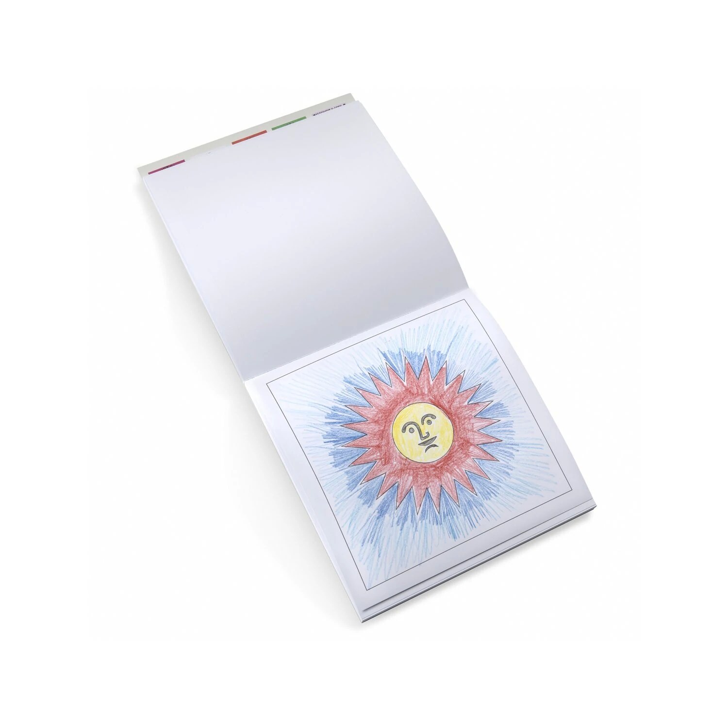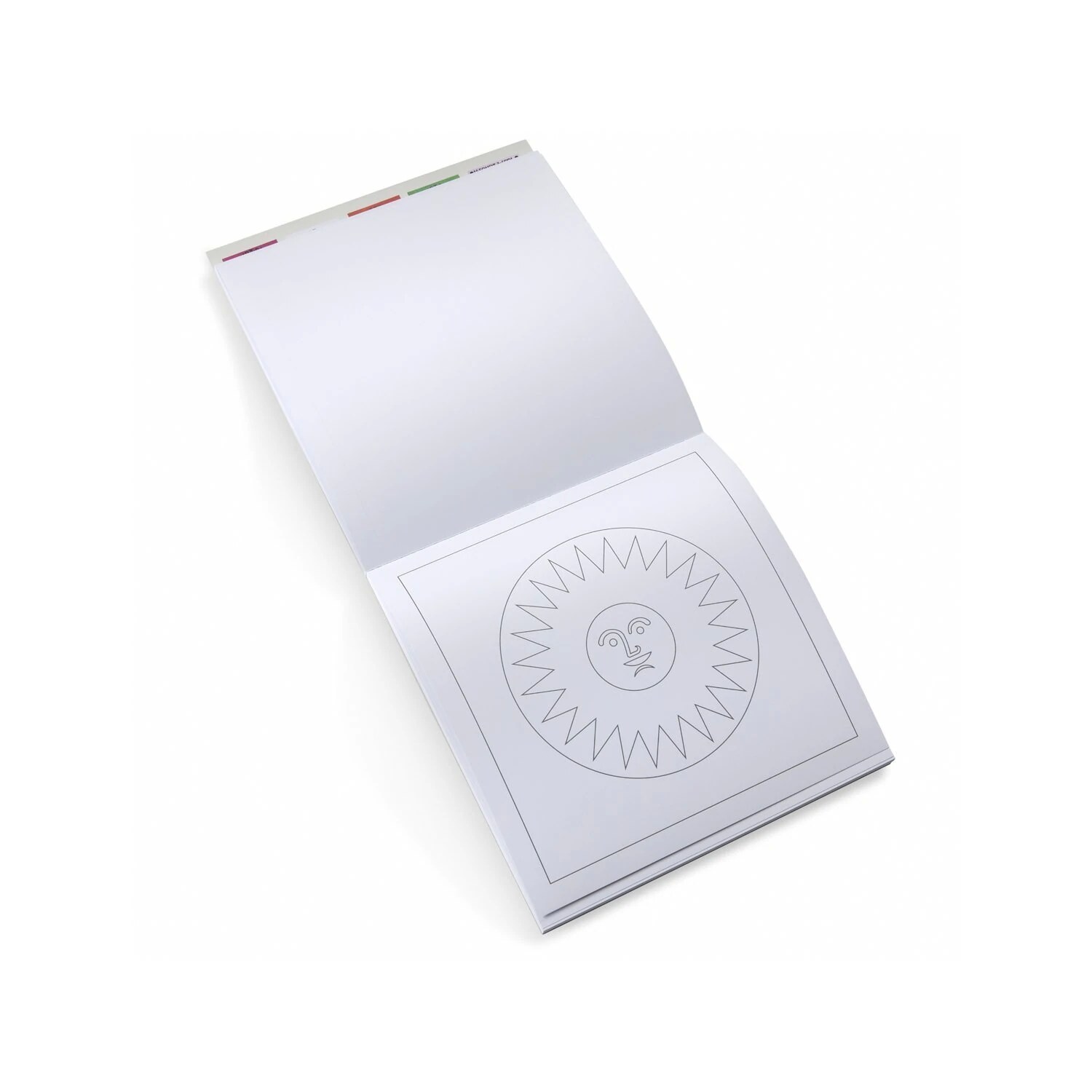 Malheft mit dem fröhlichen Sonnen Sujet von Alexander Girard