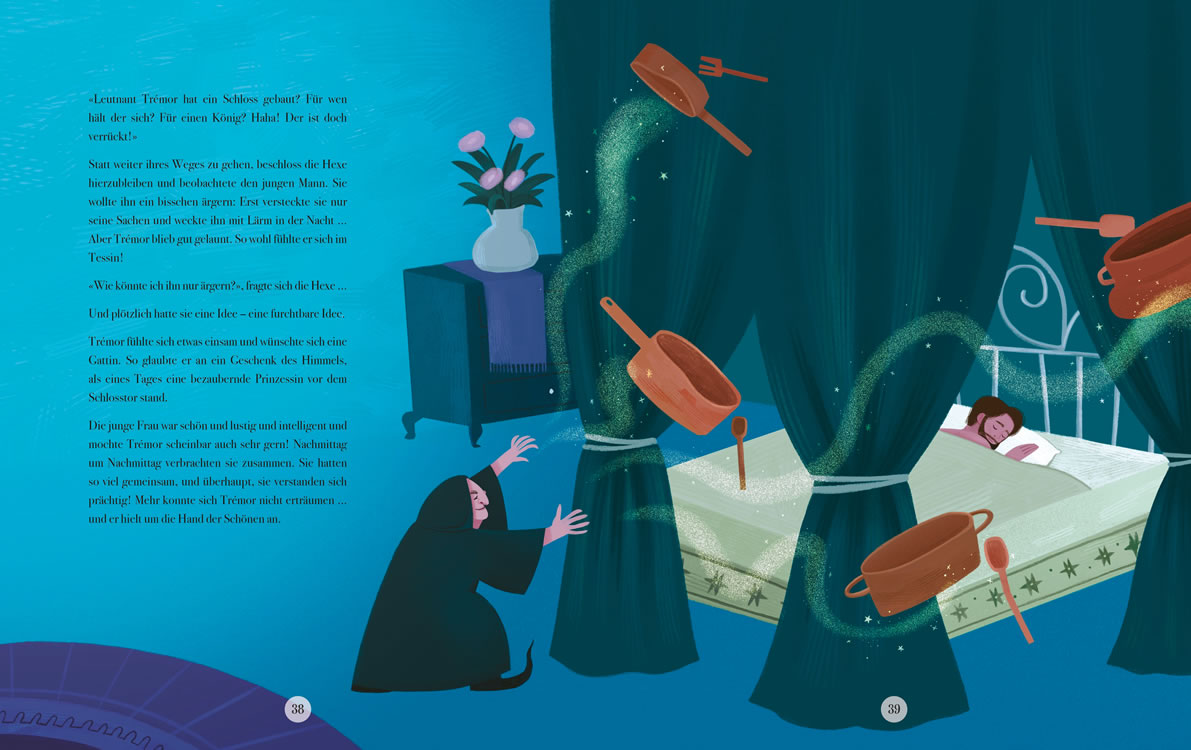 Dass Sagen überhaupt nicht verstaubt und von Vorgestern sind, beweist dieser moderne Sammelband im prächtigen Überformat. 20 verschiedene Sagen aus der ganzen Schweiz – zum Einstieg findest Du auf der ersten Doppelseite eine Karte der Schweiz mit all ihren Kantonen, so dass Du die Geschichten geografisch einordnen kannst – sind in diesem Prachtband nacherzählt und hip bebildert.