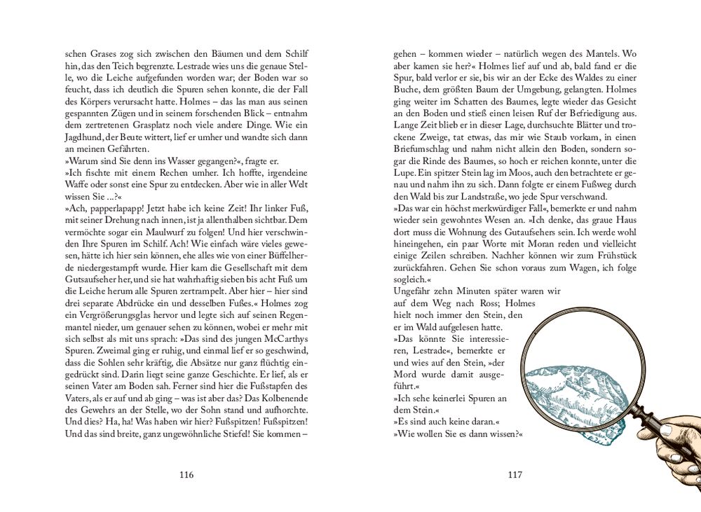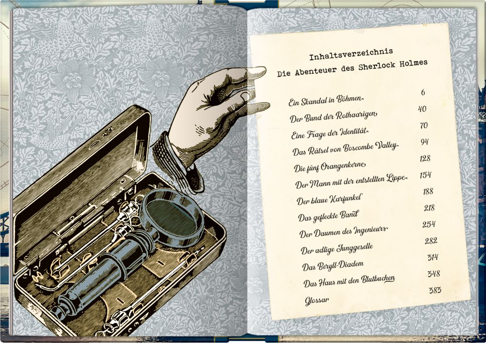 „Sherlock Holmes – Die Abenteuer“ beinhaltet die ersten zwölf Erzählungen über den berühmten Detektiv und seinen Partner Dr. Watson. Mit Scharfsinn und unkonventionellen Methoden löst das Ermittler-Duo legendäre Kriminalfälle, klärt niederträchtige Morde auf und entwirrt brisante Rätsel. Diese bibliophile Ausgabe lädt durch ihre detailverliebte Gestaltung mit aufwendigen Illustrationen zum Schwelgen ein. 11 Extras in einer Faksimile-Optik lassen die Leser:innen in die Abenteuer des Meisterdetektivs eintauchen.