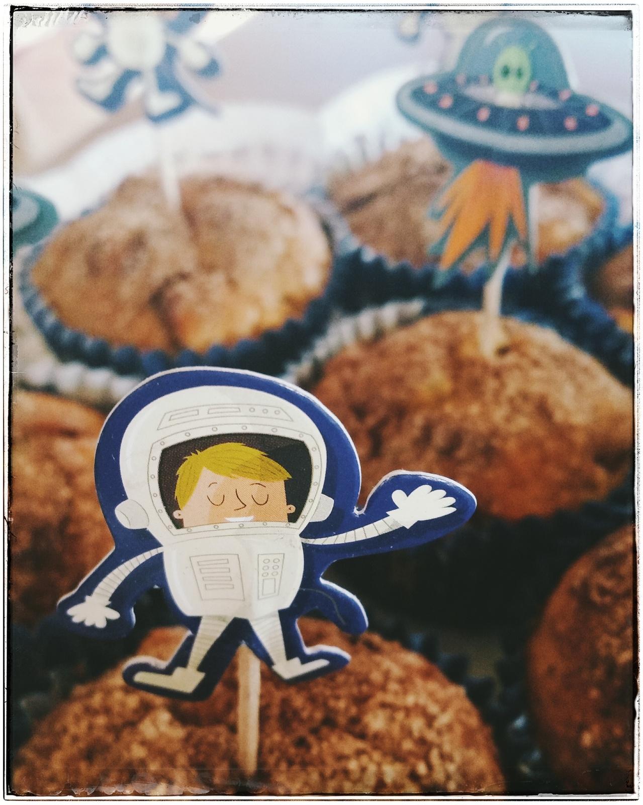 4 verschiedene Weltraumhelden für den nächsten Kindergeburtstag oder Familien-Feier der anderen Art: 1 Alien im Raumschiff, 1 Alien in der Rakete, 1 Affe im Raumanzug und 1 Astronaut dienen als Topper für diese Cupcake oder Muffin Runde. Die dazu passenden Förmchen sind natürlich auch gleich mit dabei.