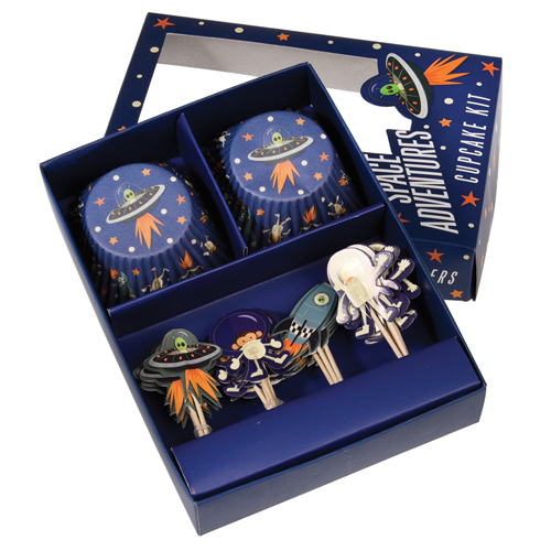 Cupcake Set „Space Adventures“. Mit 24 Förmchen und 24 Toppers.