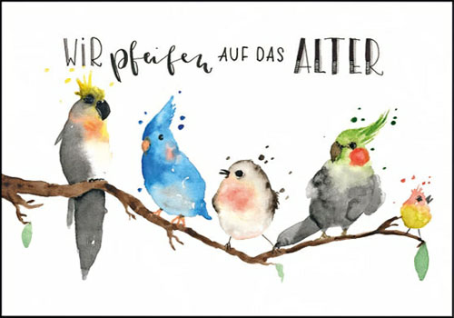 Alles Gute zum Geburtstag! Wieviele Jährchen dabei das Geburtstagskind bereits auf dem Buckel hat, interessiert uns nicht. Denn wir machen es wie die 5 flotten Vögeli auf der Karte: wir pfeifen ganz einfach aufs Alter!