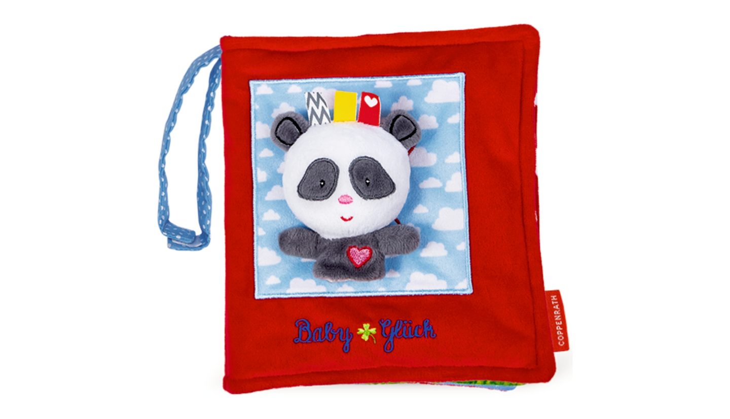 - mit Spiel- und Fühlelementen und 3 Einsteck-Taschen für Fotos