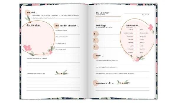 Mit dem liebevoll gestalteten Freundebuch für Erwachsene kannst Du Deine besten Freund:innen nochmal ganz neu kennen lernen. Einfach ausfüllen lassen und in Erinnerungen schwelgen!