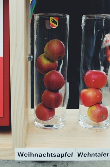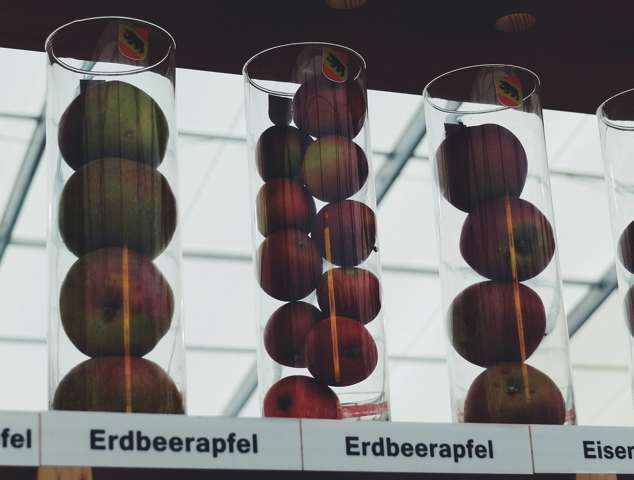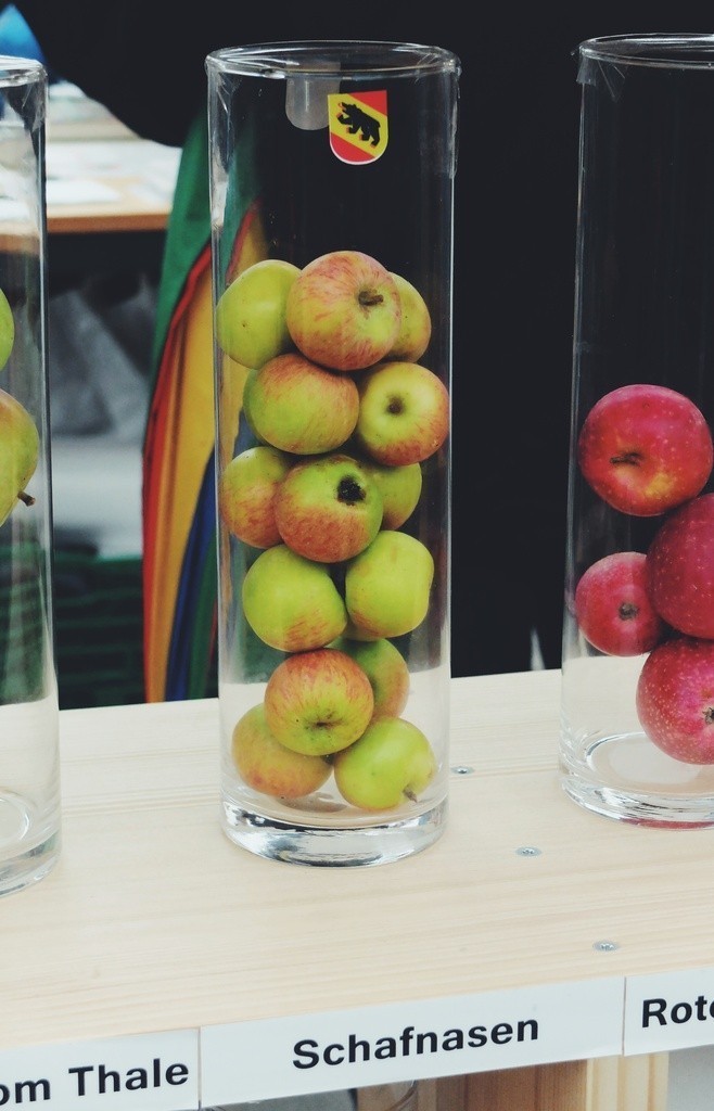 Weitere Beispiele origineller Sorten. Zwei Teenies kicherten übrigens über den (nicht fotografierten) Baschi-Apfel. Das wäre doch ein cooles Merchandise, Baschi!