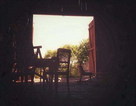 Letzten Samstag haben Herr Lotterich und Frau Lotte Möbel in die Scheune geschleppt. Vorne Links der alte Esstisch mit den Stühlen. Hinten rechts wurde mit einigen Harassen und einem Brett ein Couchtischchen gebastelt, dazu ein paar Sessel und Kissen gestellt.