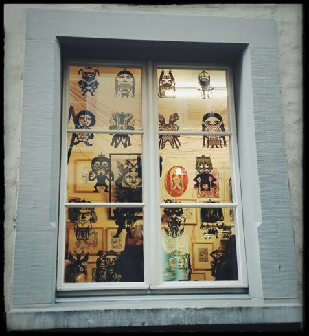 ... sowie im Kunstmuseum Luzern der grosse italienische Künstler Lorenzo Mattotti, dessen Bilder nicht fotografiert werden dürfen. Stellvertretend dieser Raum mit einem Bild von Fabian Marti. Auch zum Briten Tom Gauld im Historischen Museum und zur Sonderausstellung 25 Jahre Fumetto geht's. Auf dem Weg von hier nach da liegen zahlreiche Satelliten-Ausstellungen, die schaut sich Frau Lotte natürlich auch gleich an! Das sind die kleinen Ausstellungen, oft in einem Schaufenster eines Lädelis oder als Tisch-Sets in einer Beiz, die auch ohne Fumetto-Bändeli angeschaut werden können.