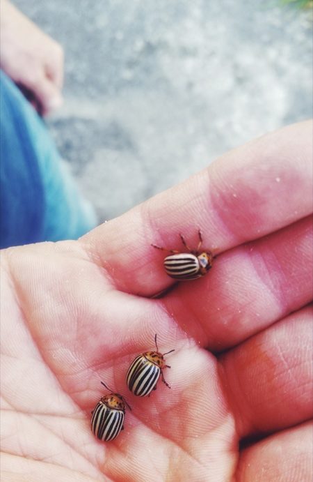Beim Kartoffel-Umstechen fand Herr Lotterich diese hübschen Kerlchen. Dürfen wir vorstellen: die Kartoffel-Käfer-Gang. Leider nicht nur schön, sondern auch sehr gefrässig. Während des 2. Weltkrieges verwendete man solcherlei Viecher sogar zu Propaganda-Zwecken! Herrn Lotterich gefallen sie übrigens besser unter dem Namen "Colorado potatoe beetle". Dort, in Colorado, USA, wurden die ersten ihrer Art gesichtet. Also, zusammengefasst: Käferchen aus Amerika für Knollen aus Südamerika mitten im Schweizer Idyll. Das ist multikulti!