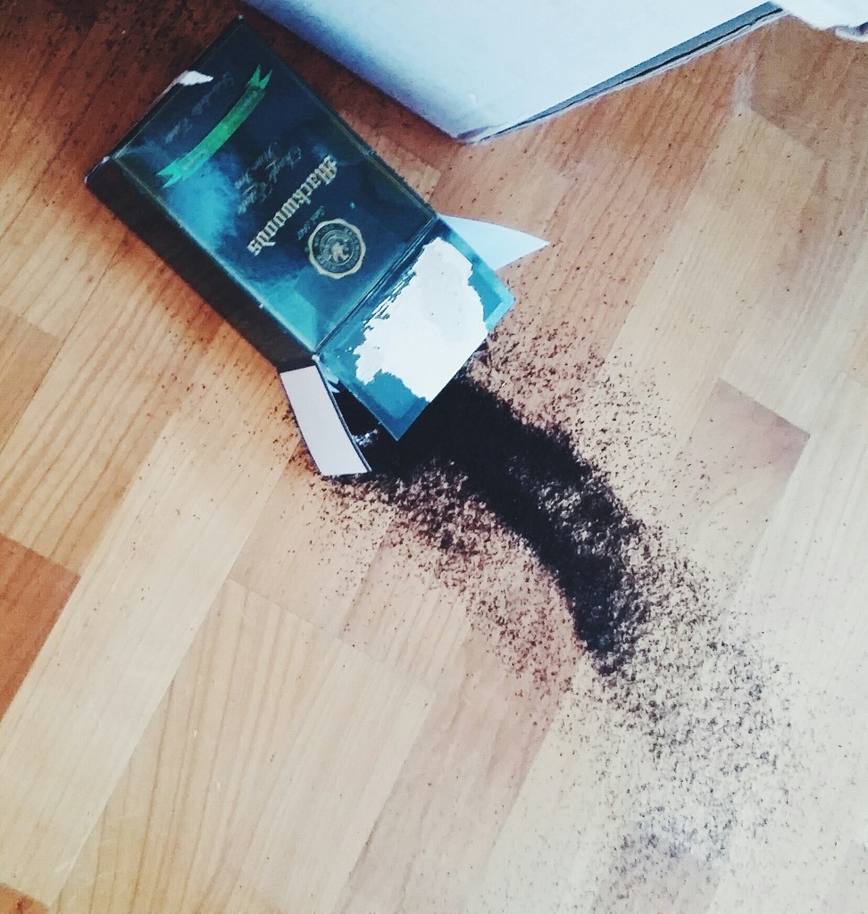 Gerade von einer zurückgekehrten Freundin geschenkt bekommen und schon ausgeleert: Schwarztee aus Sri Lanka. Arrrgh. Und der Orden für Oberschussel geht heute an... Frau Lotte! (Zum Glück wurde der Staubsauger bereits erfunden. Und ebenfalls zum Glück: der meiste Tee ist brav in der Packung geblieben).
