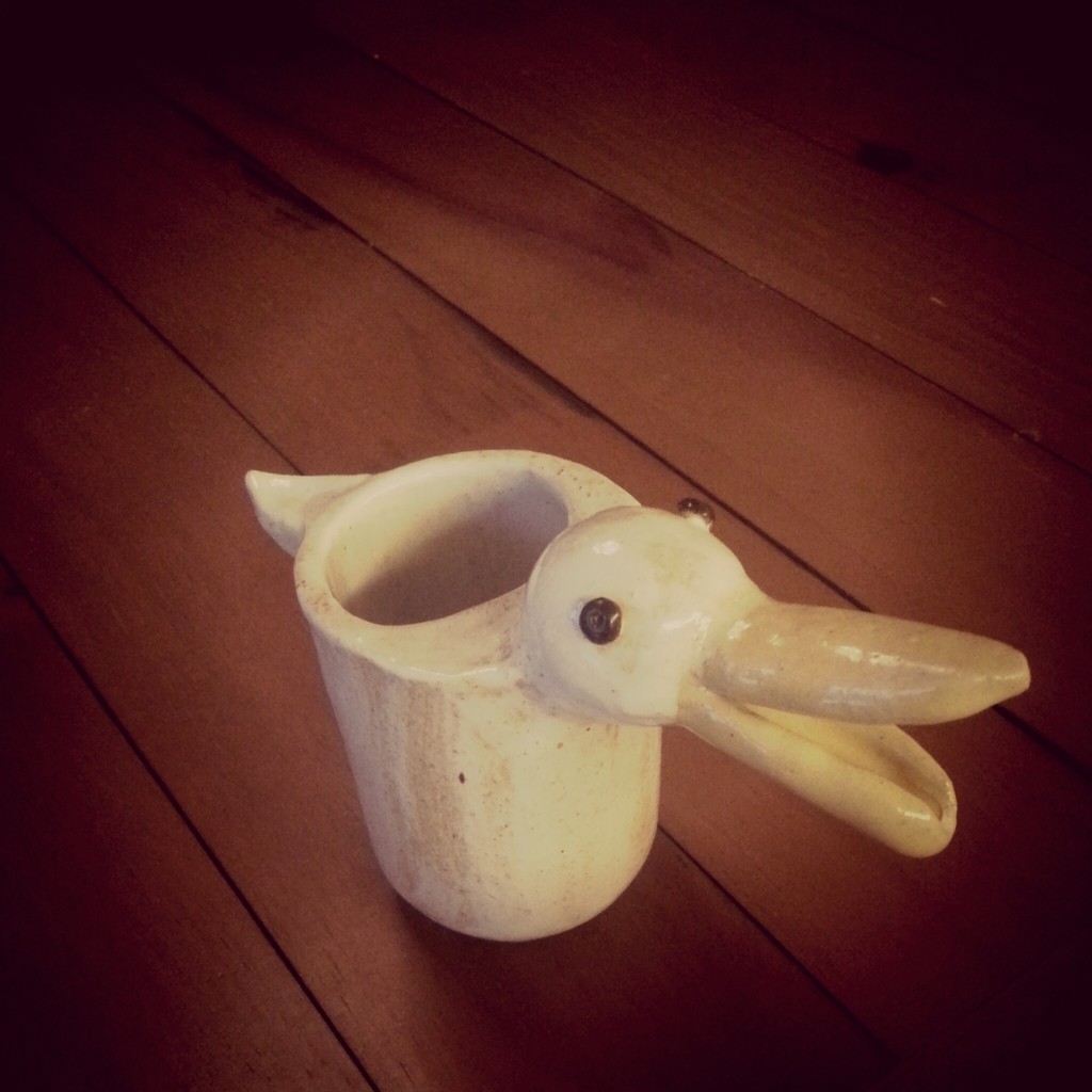 Ach, übrigens entsteht auch immer wieder Etwas an diesen Abenden! Dies ist das jüngste Resultat: Frau Lottes neues Milchkrüglein (*Stolz*)