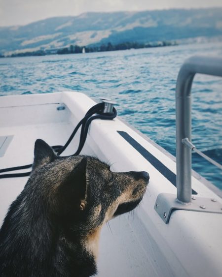 Am Wochenende war Familie Lotte auf der Insel. Auf der Insel Lützelau. Das ist eine kleine Insel im Zürisee, die zum Kanton Schwyz gehört, ein Naturschutzgebiet ist und nebst einem netten Restaurant einen Zeltplatz hat. Der Weg dorthin muss entweder selber zurückgelegt werden oder aber per angeheuertem „Lütz-Shuttle“. Auf dem Bild ist Hund Lotte auf letzterem zu sehen – immer schön die Nase im Fahrtwind. Obwohl nur 1,5 km vom Lottschen Wohnort entfernt, fühlte es sich gaaaaanz weit weg an! Sogar der Strand war anders wie auf der anderen Seeseite: mit rutschigen Felsen statt mit kleinen Steinen, das Wasser türkisblau wie das Meer.
