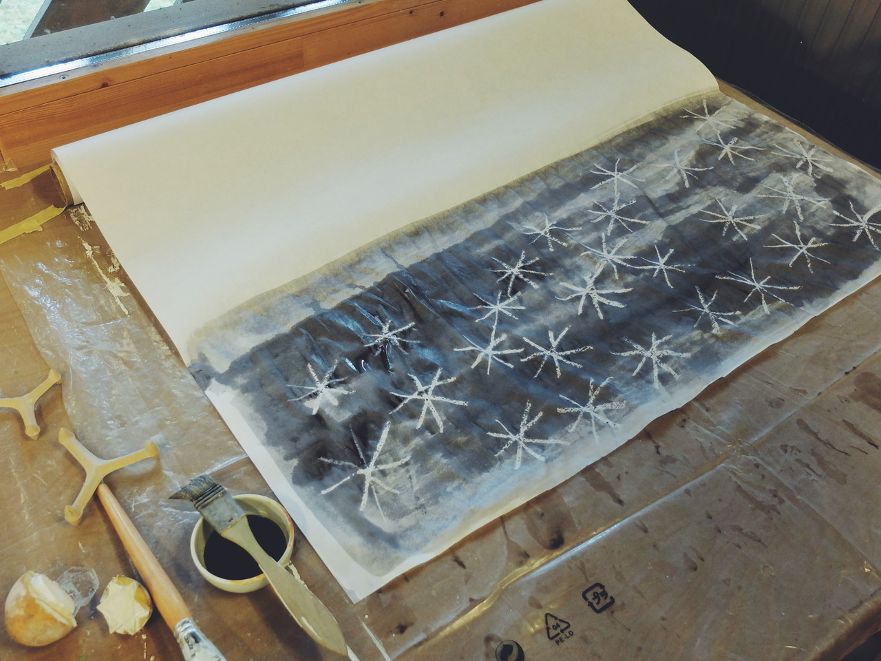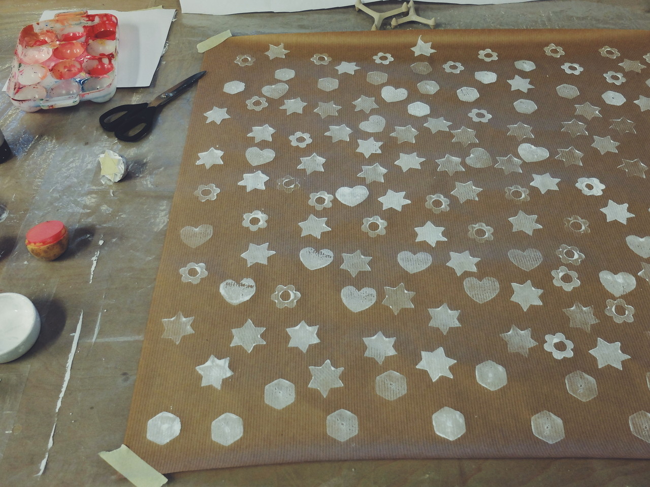 Gestern löste ich meinen Geburtstagsgutschein bei der Töpfer-Fee ein: einen Nachmittag lang eigenes Geschenkpapier kreieren.