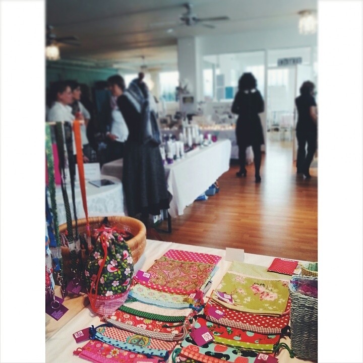 Meine Standnachbarin Iris von Blümchen macht wunderhübsche Sachen! Nicht auf dem Bild sind ihre supertollen Wäscheklammerbeutel. Widerstand zwecklos bei solchen Beauties - ich machte mir selber ein Geschenk mit einem in der Variante rot-gepunktet mit Pompoms dran.