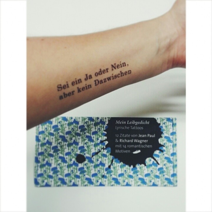 Na, irgendwie muss mich das inspiriert haben. Als Lottchen frisch geschrubbt im Bett war, hab ich mir nämlich auch noch ein Tattoo verpasst. Eines der "Leibgedichte" aus dem Wunderland um genau zu sein.