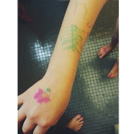 Gestern war das Lottchen bei ihrer Freundin. Plötzlich sei es so still geworden im Zimmer, erzählte mir beim Abholen die Mama der Freundin. Die beiden haben sich ein Ganz-Körper-Tattoo verpasst. Und mit ganz-Körper meine ich ganz-Körper - auch das Gesicht.
