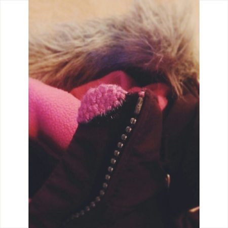 Das Mama-Sein fördert öfters mal die eigene kreative Seite. Hier ein Beispiel: das Lottchen unserer beinah-Nachbarn durchlebte eine intensive Kau-Phase und nagte ein grosses Stück vom Mantel-Kragen ab. Und was hat Mama-beinah-Nachbarin gezaubert? Einen selber gestrickten Flick in Lottchen-Pink!