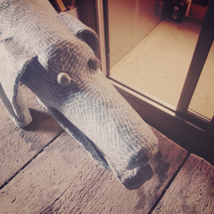 herumtreiben Heute haben wir uns etwas herumgetrieben. Und dabei hat Lottchen die Schaukel wieder entdeckt und ich den Hund, der das Atelier der Töpferfee bewacht. (Er ist aus Pappmaché, denn das kann die Töpferfee auch.) |