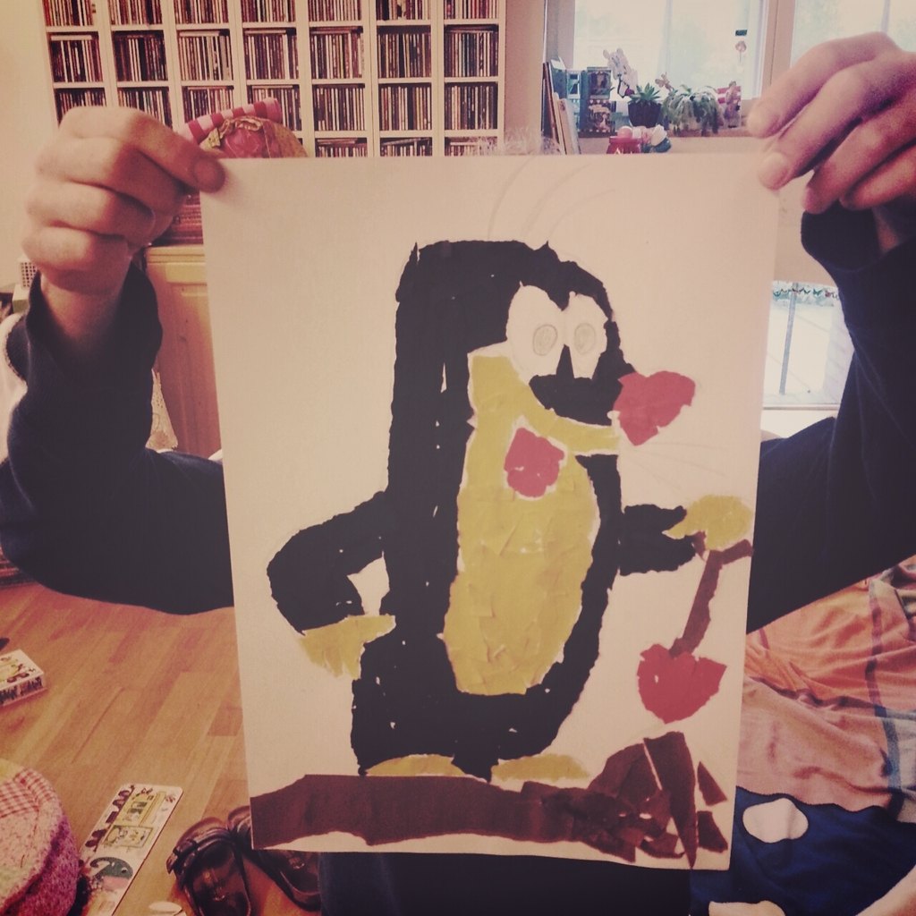 gemeinsam Lottchens Götti hatte diese Woche Geburtstag. Frau Lotte hat die super-Ideen-Sammelstelle "das grosse Buch vom Basteln und Spielen" zur Verfügung gestellt und Lottchen und Herr Lotterich haben sich was ausgesucht und auch gemeinsam umgesetzt. Klebebild "der kleine Maulwurf". Frau Lottes Herz explodiert beinahe vor Stolz. (Und der Götti hat es grad in der Chuchi aufgehängt, wo er es jeden Tag sieht). |