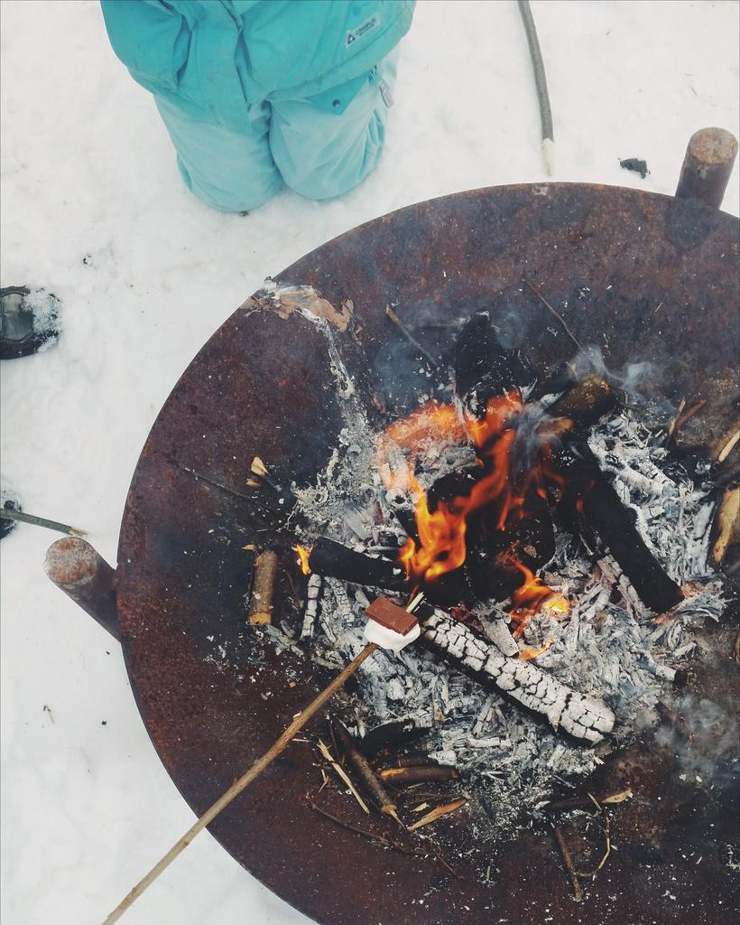 Gegen die Kälte gab es heisse Ovi und Marshmallows zum Bräteln. Irgendwann wurde die Königsdisziplin des Marshmallow-grillen entdeckt: kleine Schöggelis obenauf legen (-> ein bisschen reindrücken, damit's klebt und nicht grad wieder runter fällt!) für besonderen den besonders schmackhaften Genuss!