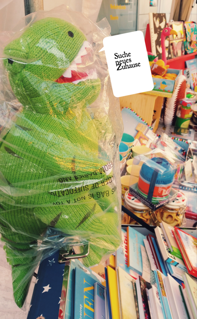 -> Die meisten haben mitbekommen, dass der Dino dringend ein neues Zuhause sucht. (Er ist nämlich des öfteren jemandem entgegen gesprungen, tsss, tsss!) Falls sich jemand fragt, ob er denn schlussendlich erfolgreich war: nein, die Suche läuft noch.