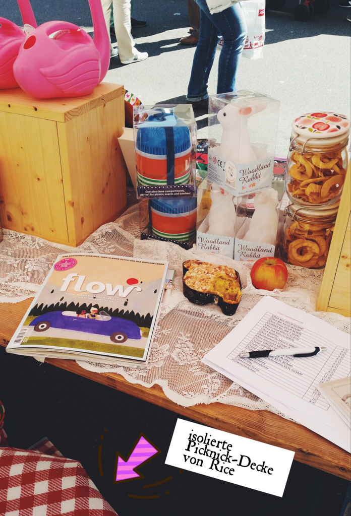 So sah es HINTER dem Stand aus. (Suchbild für Christina: entdeckst Du das bereits angeknabberte Colomba Täubchen ;-) Danke nochmals dafür - hatte so Freude!) Wie zu sehen ist: Frau Lotte benutzt wirklich selber die tollen Artikel, die im Wunderland zu erwerben sind -> Die Picknick-Decke half gegen die Kälte (der Stand selber war nicht in der Sonne).