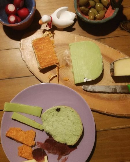 Und zum Znacht hat Herr Lotterich grünen (Wasabi-)Käse, orangen Cheddar und weissen Rahm-Bergkäse besorgt. (= Grün-Weiss-Orange -> Tricolore Irlands.). Slàinte!