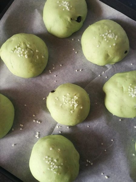 Und Brötchen mit grüner Lebensmittel gebacken.