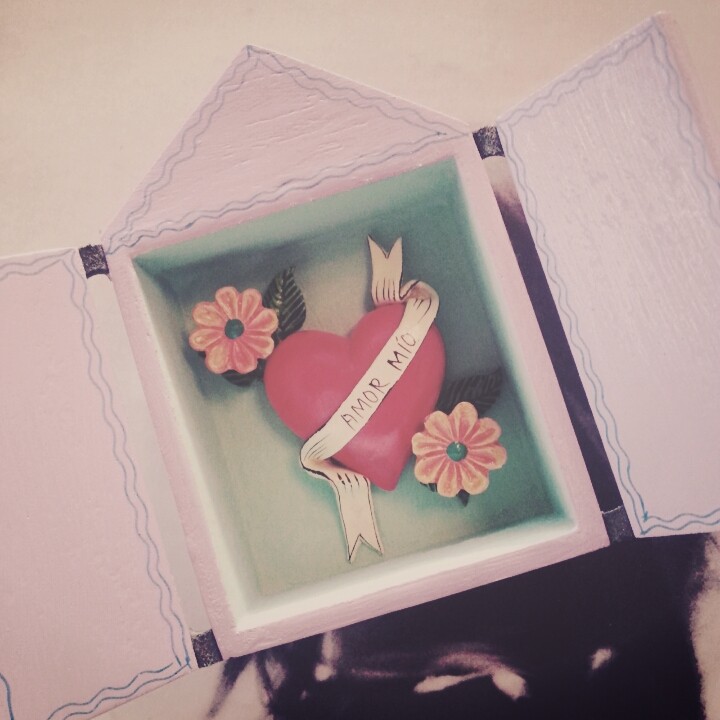„Amor mio“, „Amor eterno“, Carino mio“ etc. – das Spruchband lässt zwar vermuten, was sich hinter den hübsch bemalten Kästchentüren verbirgt. Dennoch sind diese zuckersüssen Retablos eine wunderschöne Überraschung für den Liebsten/die Liebste! Und zudem ein gute-Energie-verbreitender, farbenfroher Hingucker.