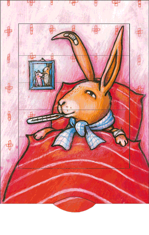 Eben noch liegt das arme Häschen ganz alleine krank da. Und Abrakadabra schon stehen Freund Bär und Schwein mit warmen Tee, Blümchen und einem kleiner Überraschung am Bett. Nun geht es wieder aufwärts – gute Besserung!