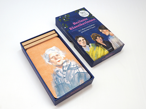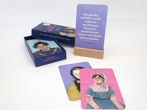 Kartenbox* Reclams Klassikerinnen. 50 Karten mit Holzständer.