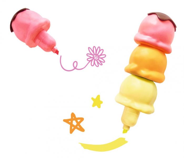 Im wahrsten Sinne des Wortes cool: dieser Textmarker kommt in Form einer Eistüte mit 3 Kugeln daher. Jede der «Eiskugeln» ist eine andere Farbe aus dem Pastellfarben-Spektrum. Dieses Glace für Bullet Journal Schreiber:innen und andere Schreibtischtäter:innen gibt es in der Kombi orange/pink/mint, gelb/mint/pink oder mint/gelb/orange. Die Sortierung ist zufällig und kann nicht gewünscht werden. Frau Lotte achtet aber darauf – wenn immer möglich - bei 2 und mehr bestellten Stiften, dass diese nicht dieselbe Farbauswahl beinhalten.