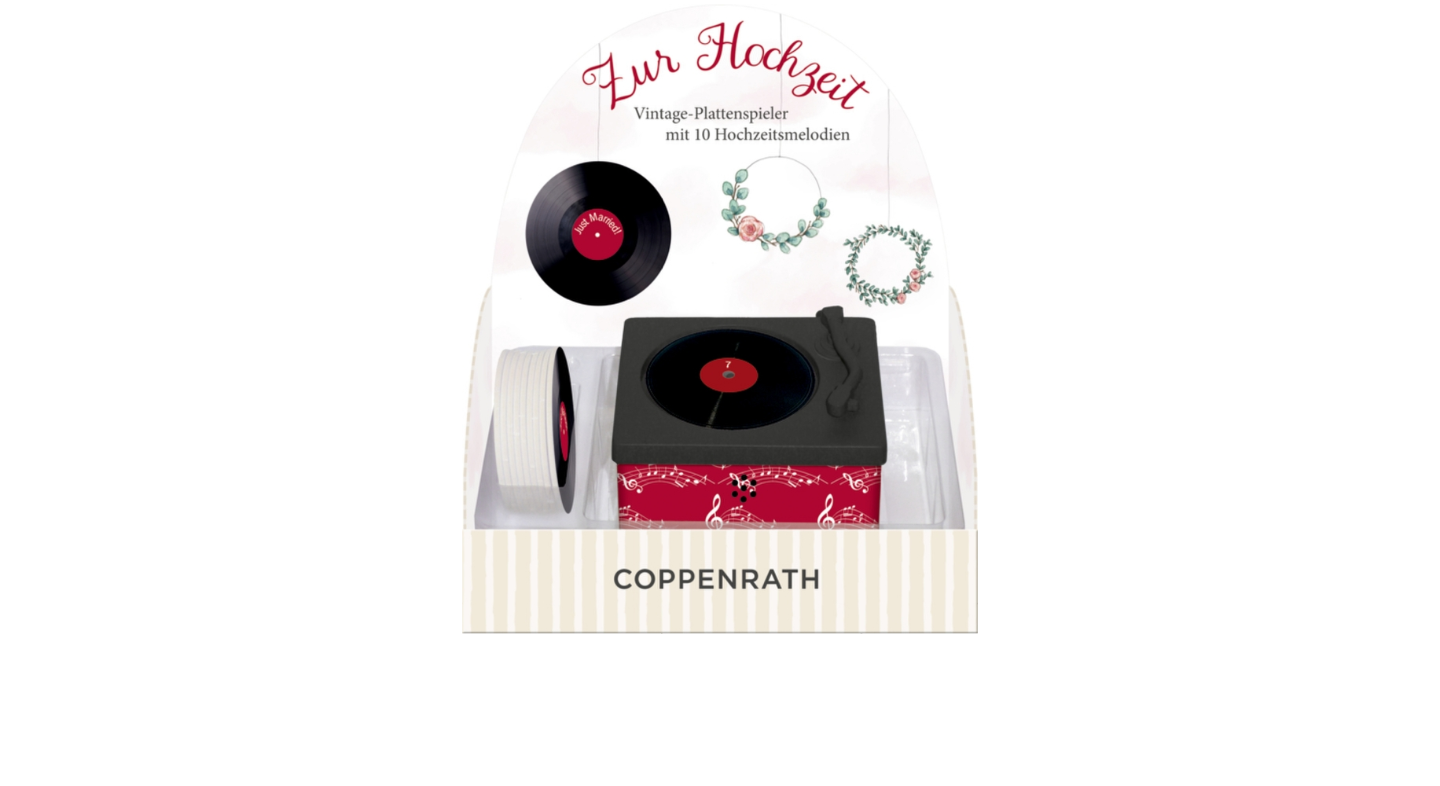 Plattenspieler mit 10 verschiedenen Hochzeitsmelodien auf Mini-Schallplatten