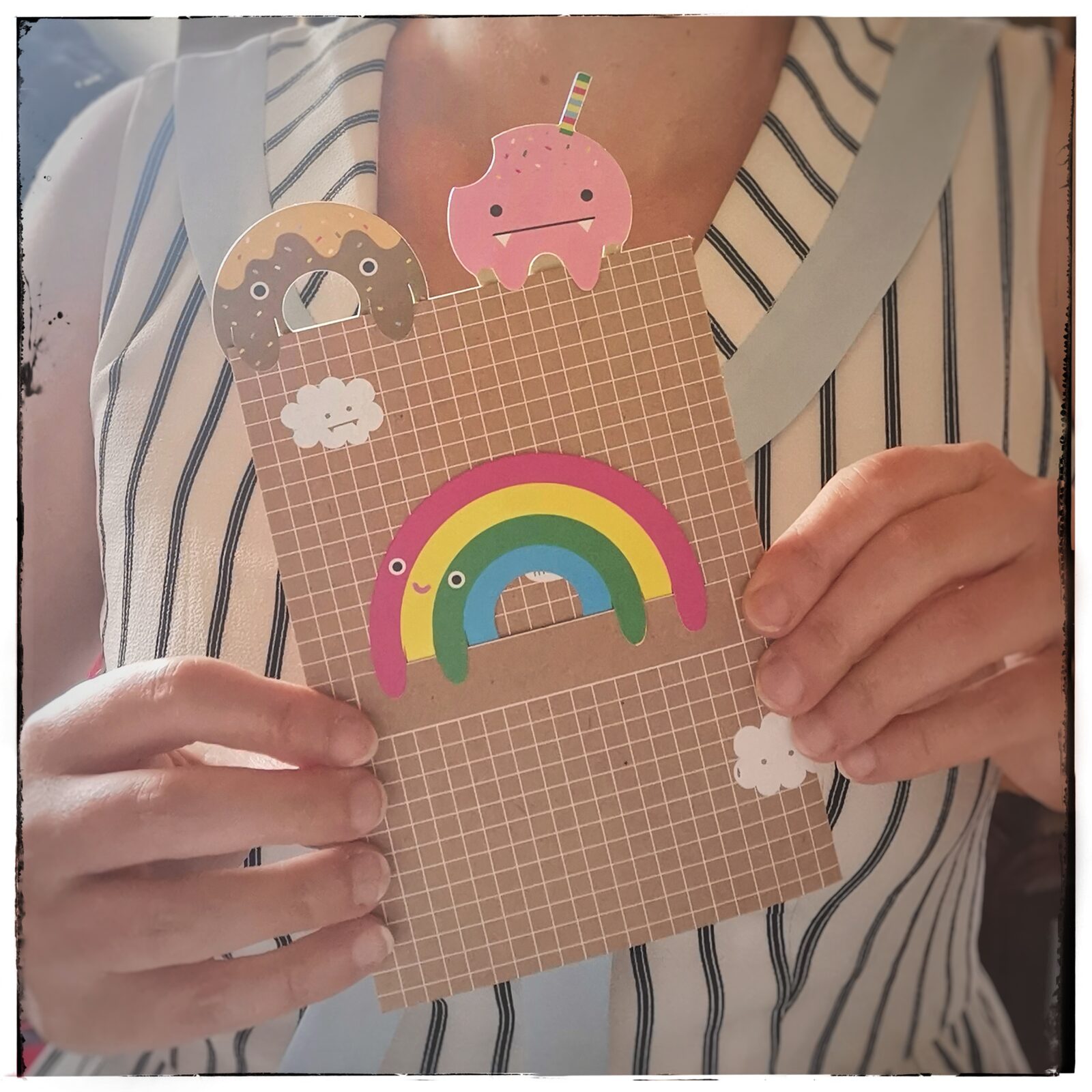 Aus der farbenfrohen Noodoll-Welt stammt dieses herzige Notizbüchlein. 32 karierte Seiten warten darauf von Dir beschrieben zu werden. Dank seiner praktischen Grösse findet es in jeder Hand- oder sogar Manteltasche Platz. Besonders cool: der bunte Regenbogen auf der Vorderseite, sowie das Ice-Cream und der Donut auf der Rückseite sind eingesteckte Buchzeichen, die Du easy abnehmen und um wichtige Stellen zu markieren verwenden kannst!