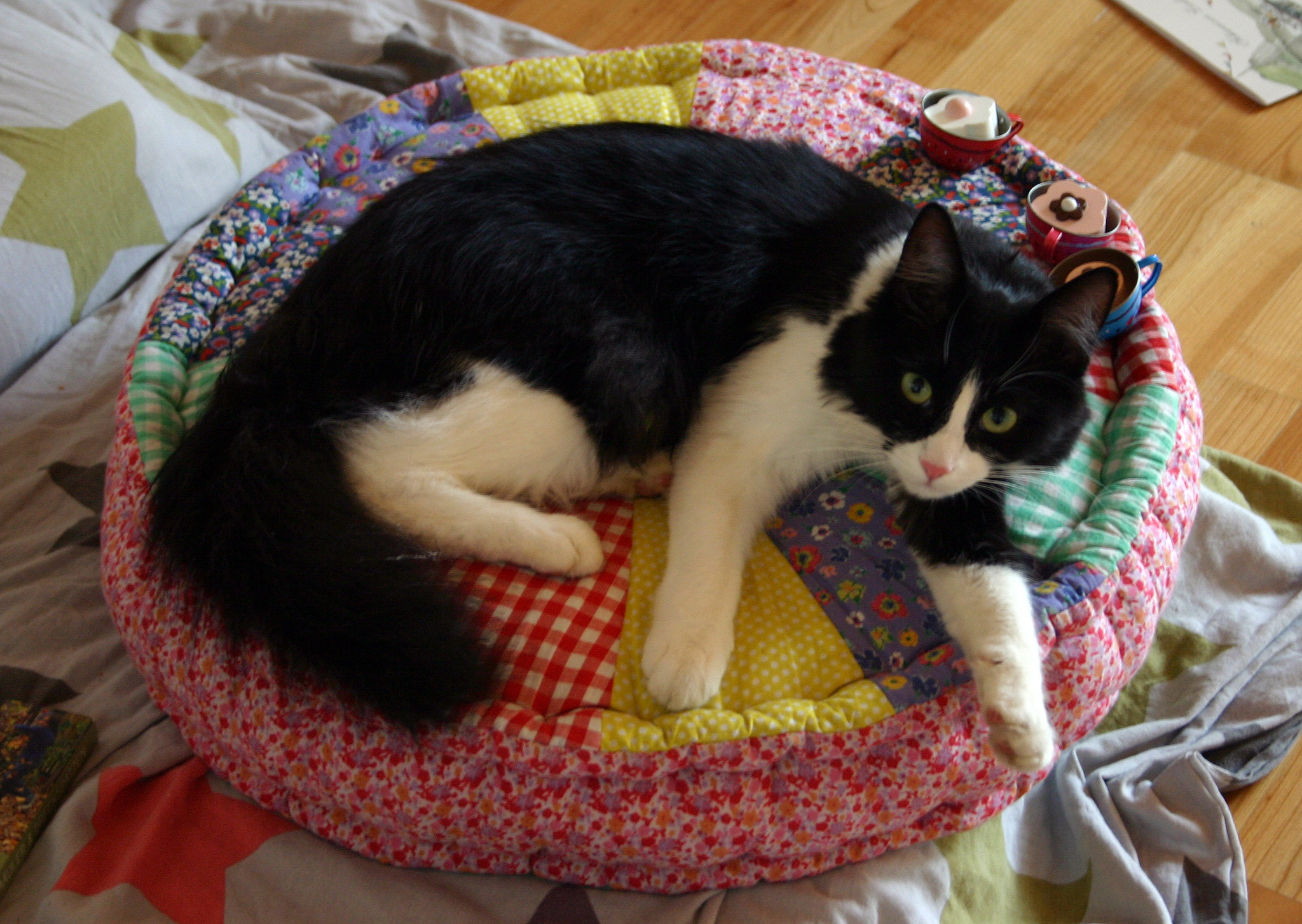 - Dank seinem fröhlichen Patchwork-Muster auch einfach ein schönes Deko-Objekt.