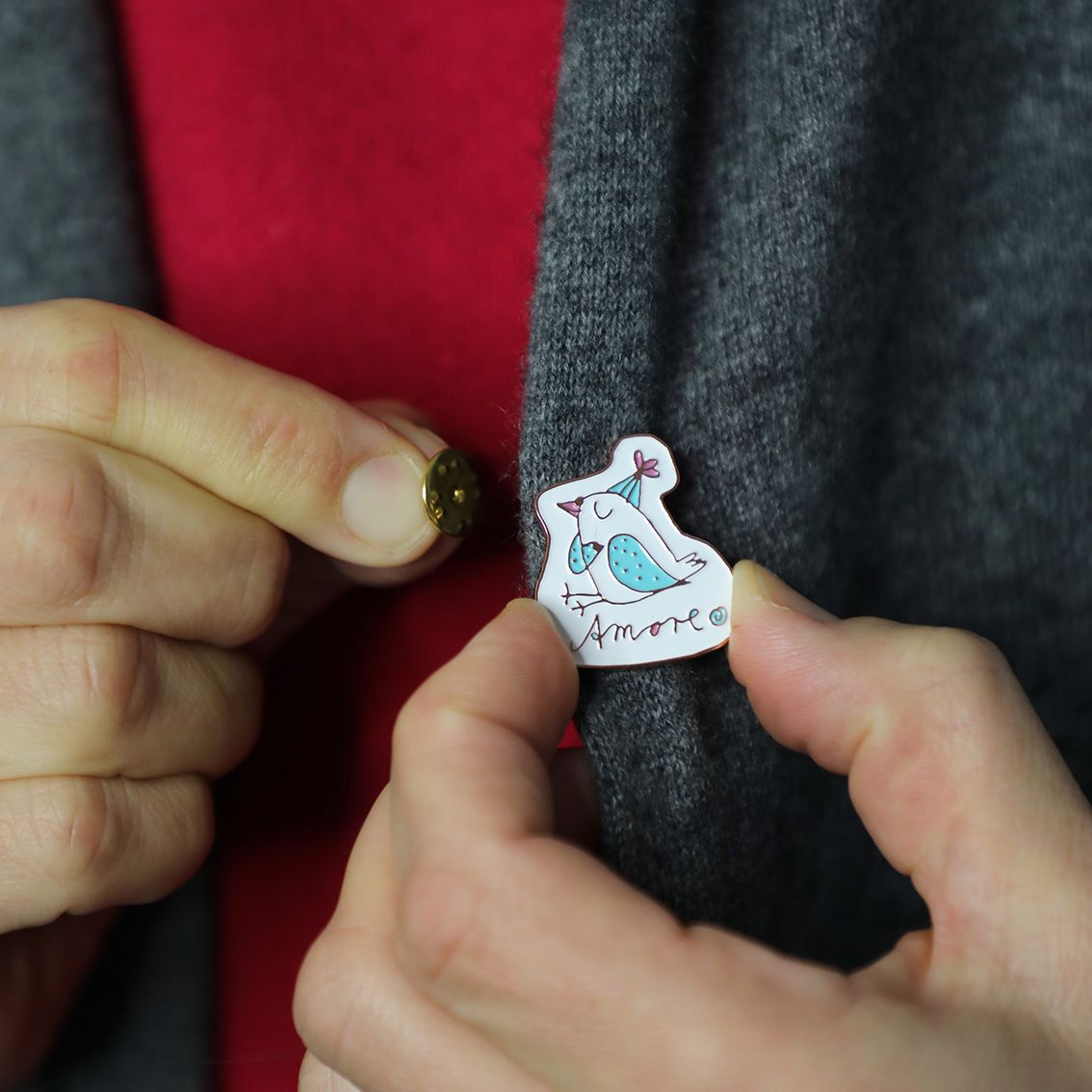 Amore für Dich – Liebe zum Tragen mit diesem very lövli Pin von Karin Drawings
