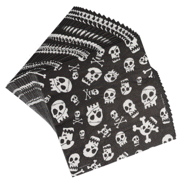 Ein Pack Servietten ist ca. 32 x 32 cm gross und umfasst 20 3lagige Papierservietten im Totenkopf-Design.