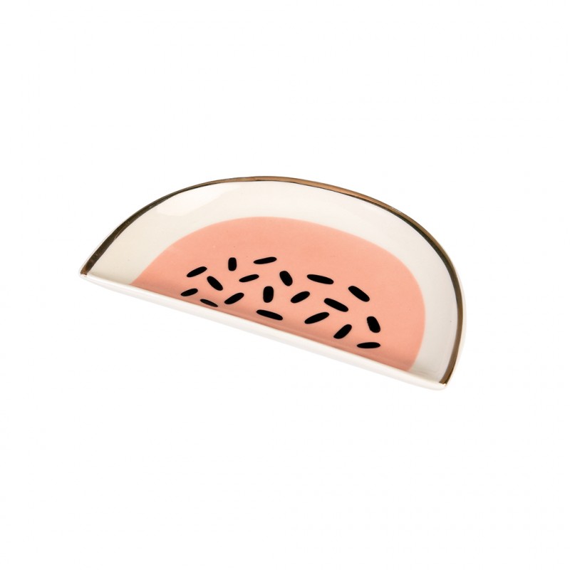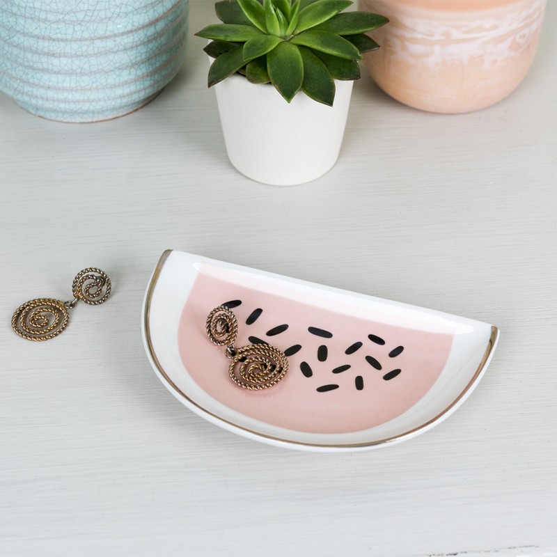Eine originelle Art, Schmuck oder andere Kleinigkeiten aufzubewahren: Porzellanschale im Wassermelonen-Look.