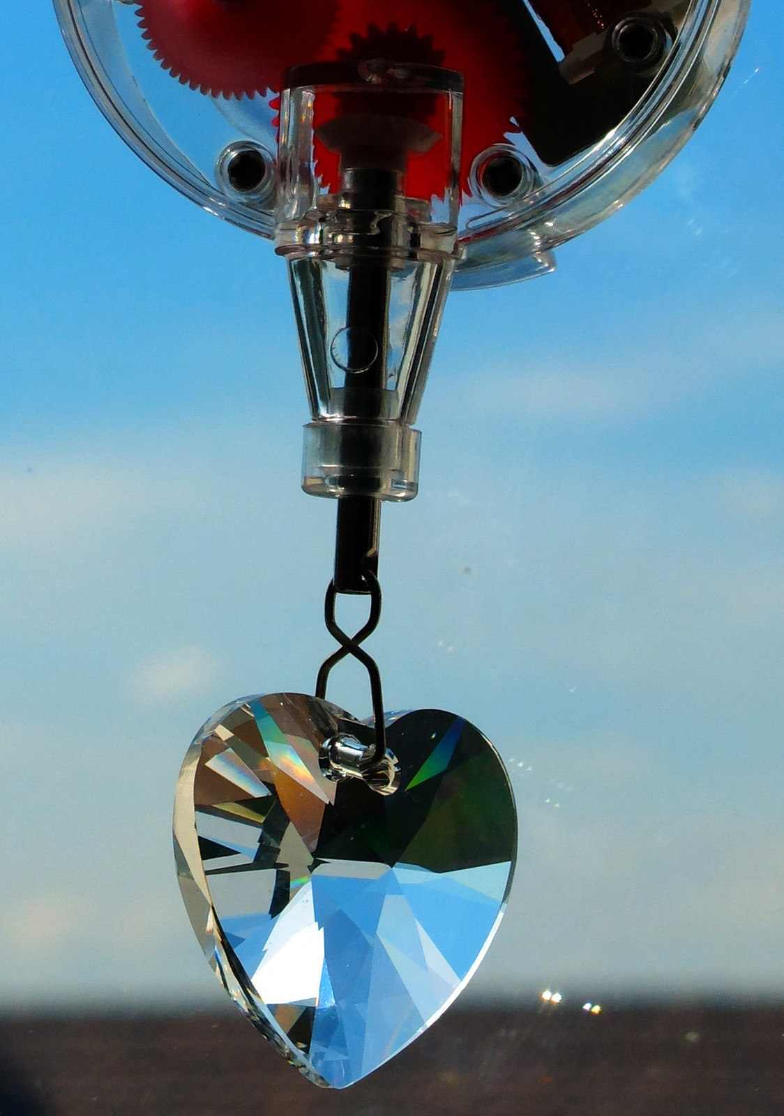 Der Rainbowmaker von Kikkerland lässt sich einfach mit Saugnapf am Fenster befestigen. Am Besten das Fenster wählen mit dem meisten Sonnenlicht. Sobald die Sonne scheint, beginnt sich das Swarovski-Herz zu drehen und wirft dabei Regenbogenlicht wie eine Discokugel ins Zimmer.