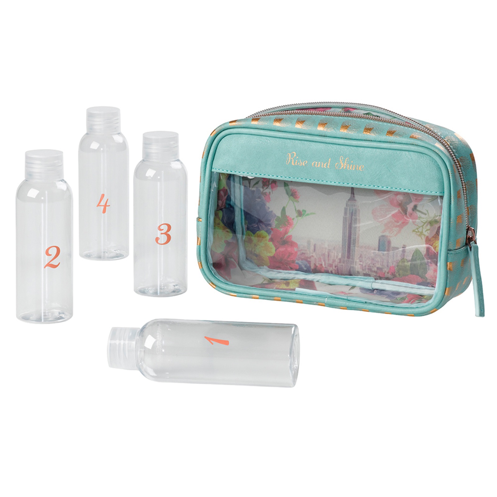 Reisenecessaire mit 4 x 100ml Fläschchen – der Beauty-Flugbegleiter.
