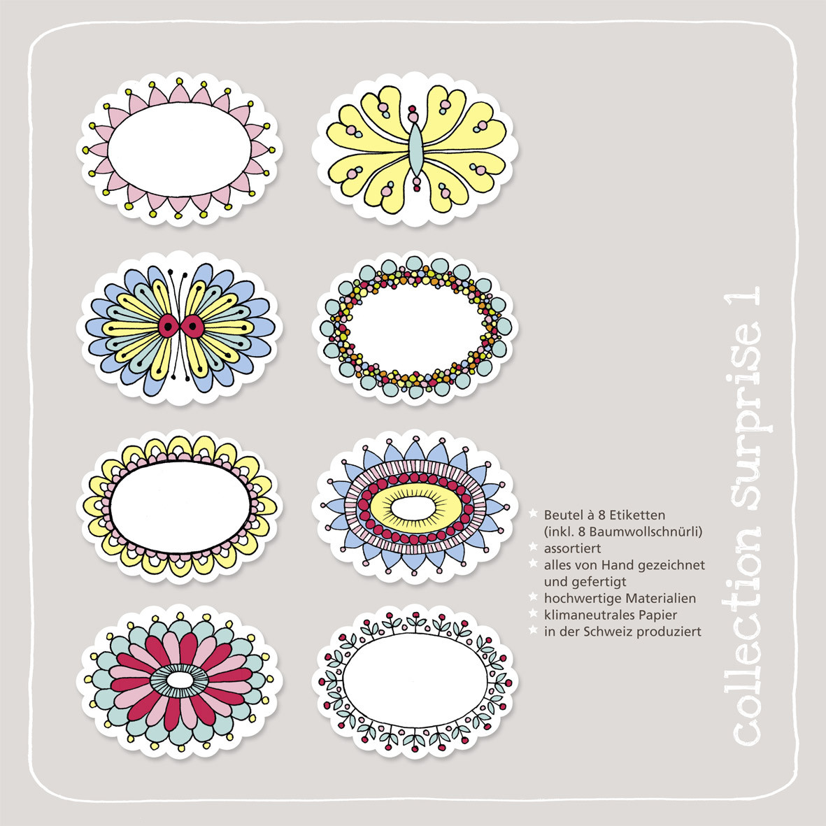 Etiketten auf hochwertigem Papier mit dazu passenden bunt gestreiften