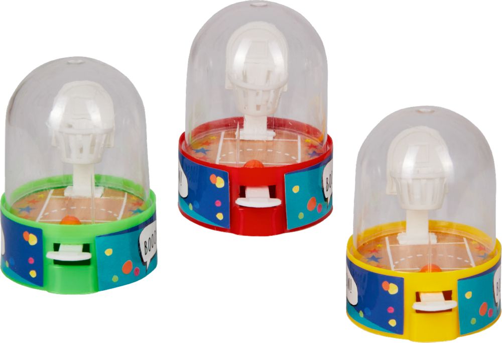 Bunte Geschenke für Kinder: Wer versenkt den Ball im Korb? Mit dem Finger lassen kleine und grosse Baskettball-Fans den Ball in den Korb flippen - ideal für unterwegs. In 3 Designs erhältlich. Der Preis gilt pro Stück.