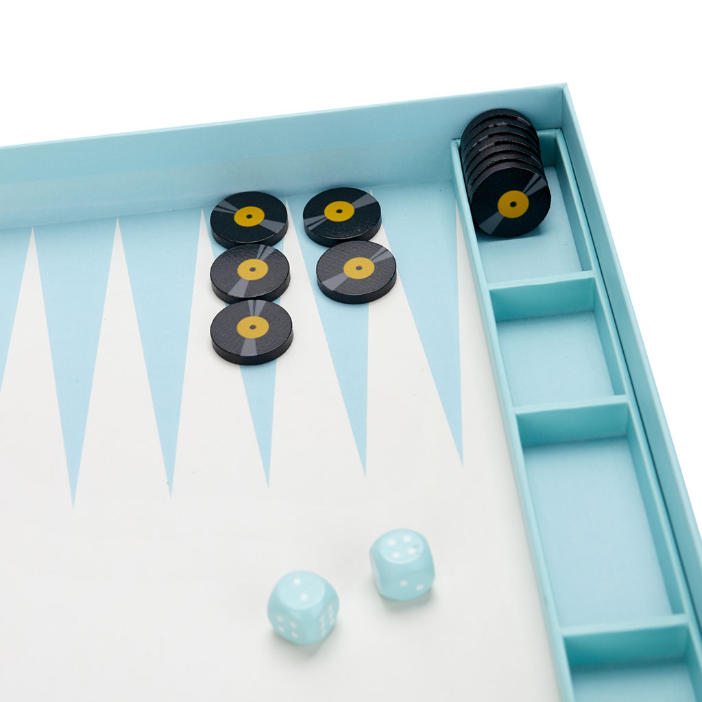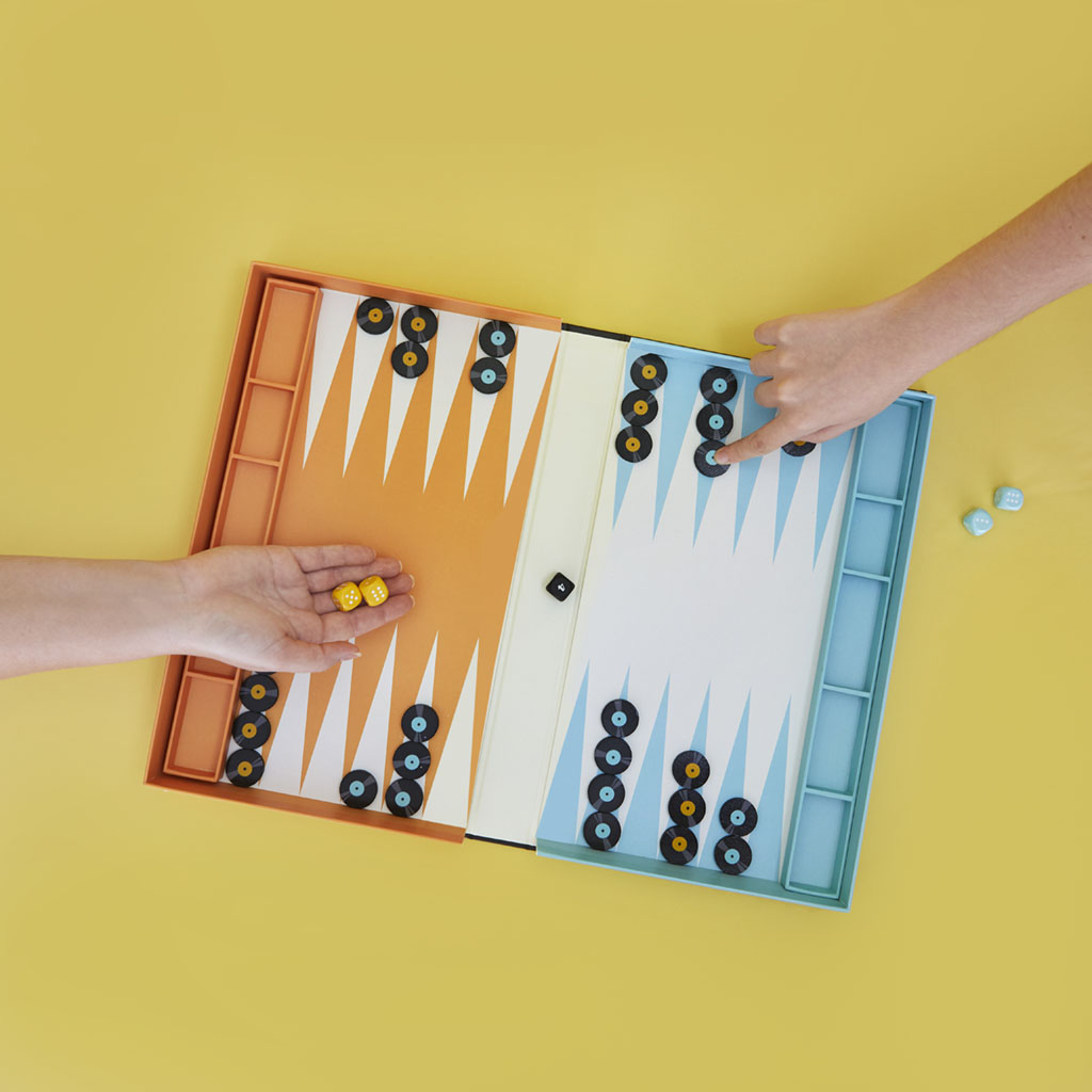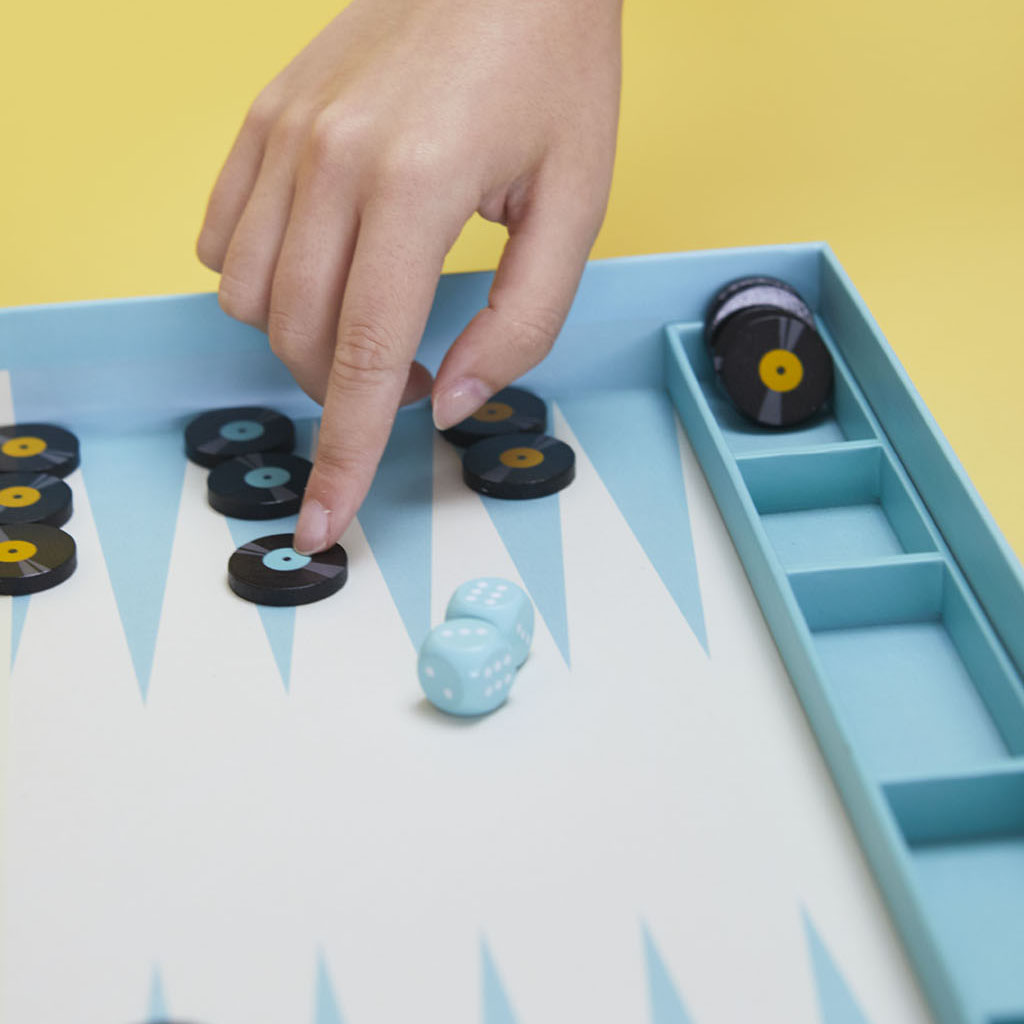 Du suchst das perfekte Geschenk für Deinen Lieblings-Music-Nerd? Hier ist es! In dieser besonderen Ausgabe des Backgammon-Klassikers gilt es alle Schallplatten vor dem:der Gegner:in vom Brett zu nehmen. Das Set enthält 30 Schallplatten und 5 Holzwürfel in einer Box, die einem Plattenspieler nachempfunden ist.