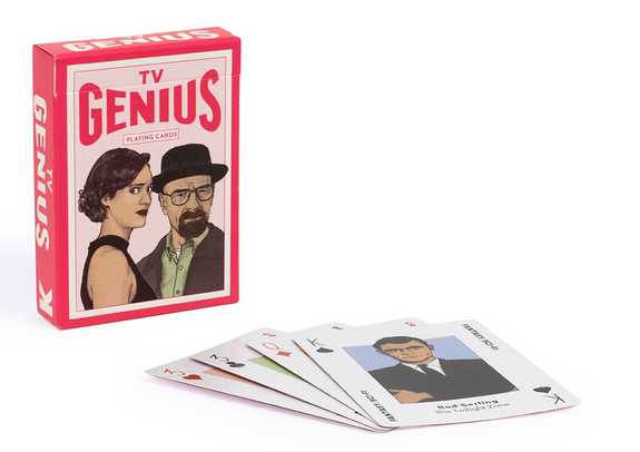 In Genius TV bring some drama to your card table with 54 of the most influential TV stars and series creators, arranged into four suits: Hearts = Comedy, Clubs = Drama, Diamonds = Crime, Spades = Fantasy & Sci-fi